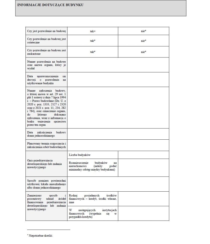 Informacje dotyczące budynku
